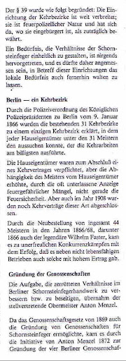 1. Schaffung einer "Legende" zur Erlangung von Vertrauen: z. B. -"Glücksbringer", "Die Erhaltung der Feuersicherheit liegt im öffentlichen Interesse" "Die Gebühr ist eine öffentliche Last", "Kehr- und Überprüfungspflicht", "Zum Zwecke des Kehrens freier Zutritt zu allen Grundstücken und Räumen", "Kehr- und Überprüfungsarbeiten dürfen nur von Fegern oder deren Gesellen ausgeführt werden" usw.